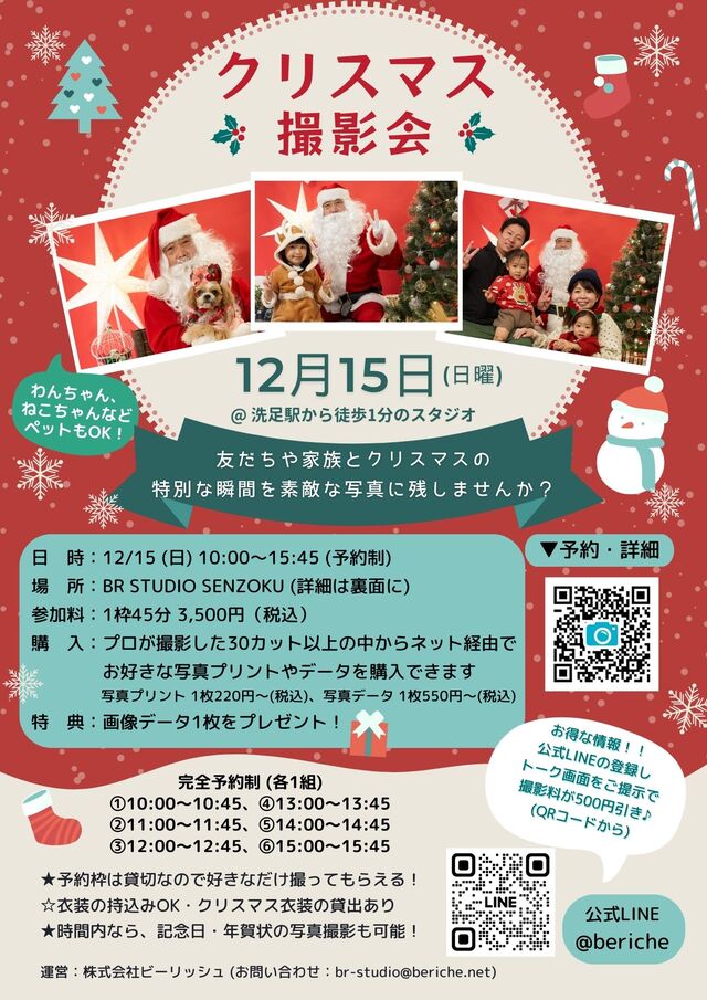 【クリスマス撮影会&サンタ訪問】12月イベント
